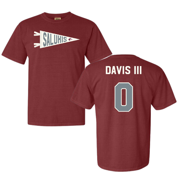 Southern Illinois University at Carbondale Football Maroon Pennant Comfort Colors Tee - #0 Vinson Davis III