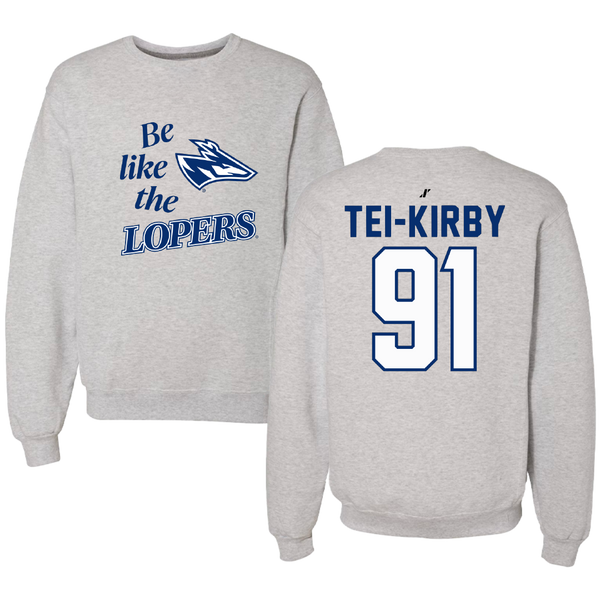 University of Nebraska at Kearney Football Light Gray Be Like Us Crewneck - #91 Wayne Tei-Kirby
