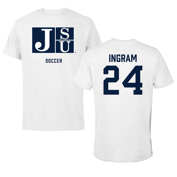 Jackson State University Soccer White Tee - #24 Willow Ingram