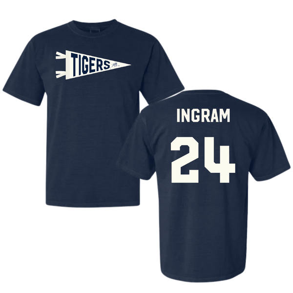 Jackson State University Soccer Navy Pennant Comfort Colors Tee - #24 Willow Ingram