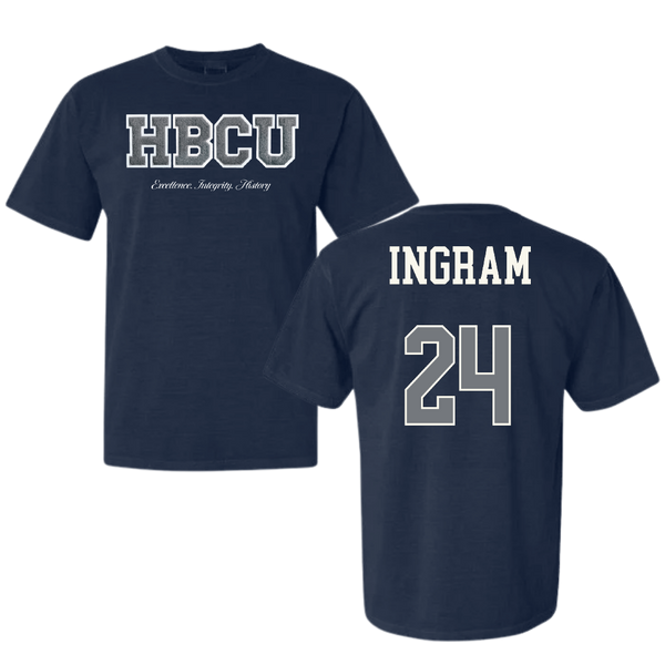 Jackson State University Soccer (W) Navy HBCU Varsity Comfort Colors Tee - #24 Willow Ingram