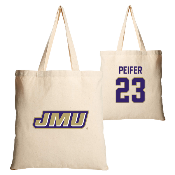 James Madison University Baseball Tan Canvas Tote Bag - #23 Wyatt Peifer