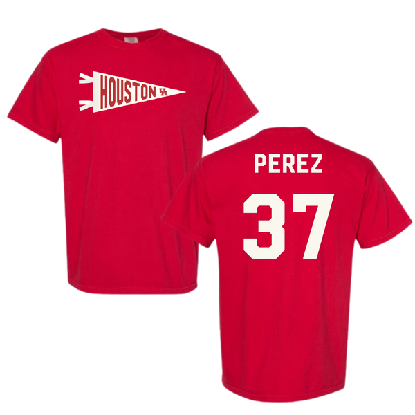 University of Houston Baseball Red Pennant Comfort Colors Tee - #37 Xavier Perez