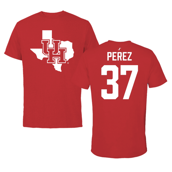 University of Houston Baseball Red State Tee - #37 Xavier Perez