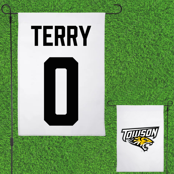 Towson University Football White Garden Flag - #0 Xavier Terry