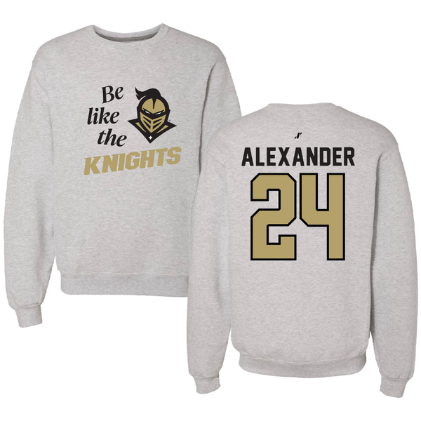 University of Central Florida Football Light Gray Be Like Us Crewneck - #24 Xe'ree Alexander