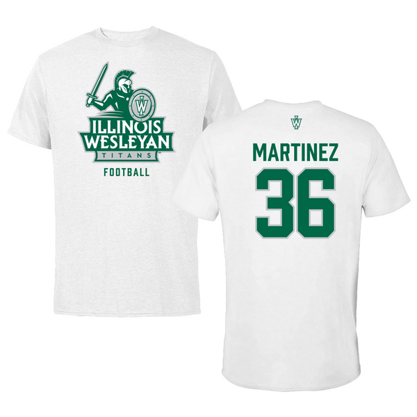 Illinois Wesleyan University Football White Mascot Tee - #36 Yahir Martinez