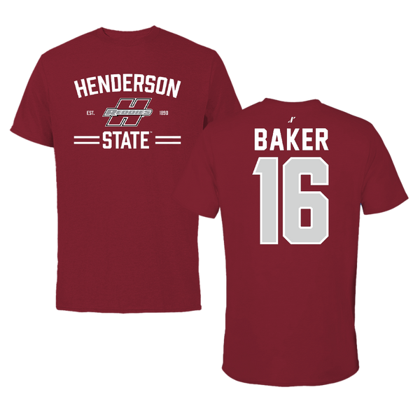 Henderson State University Football Cardinal Tee - #16 Zach Baker