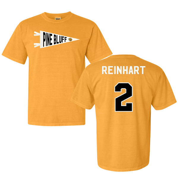 University of Arkansas-Pine Bluff Basketball Gold Pennant Comfort Colors Tee - #2 Zach Reinhart
