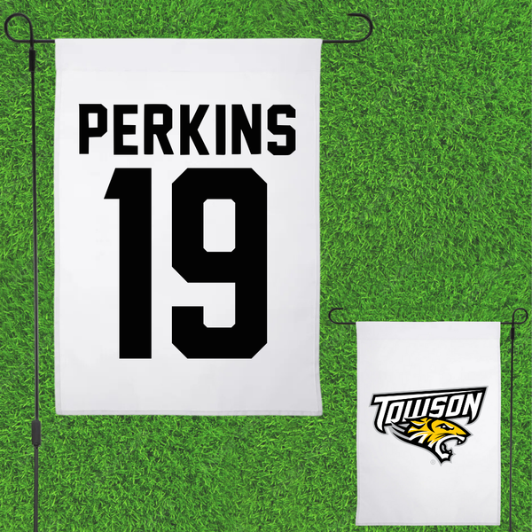 Towson University Football White Garden Flag - #19 Zay Perkins