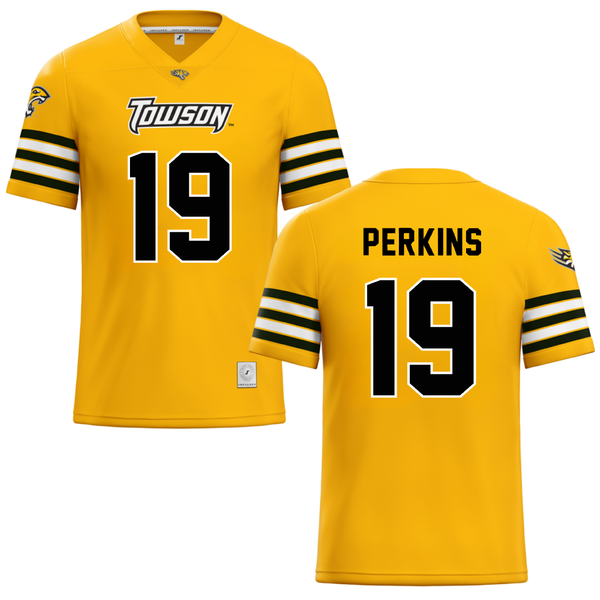 Towson University Gold Football Jersey - #19 Zay Perkins