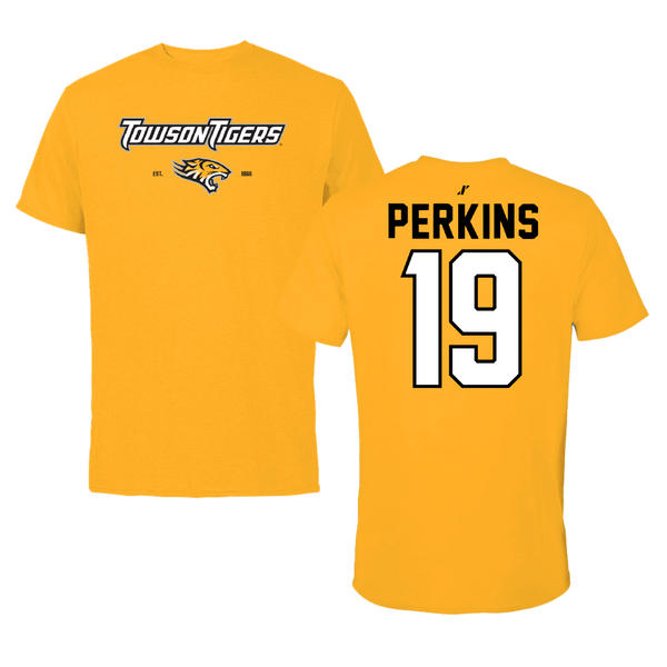 Towson University Football Gold General Tee - #19 Zay Perkins