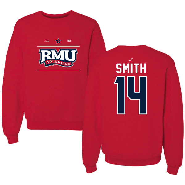 Robert Morris University Football Red General Crewneck - #14 Zin'tayvious Smith