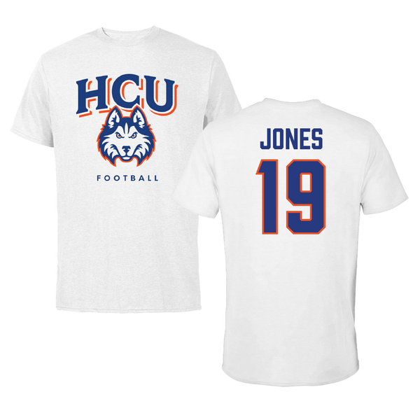 Houston Christian University Football White Classic Tee - #19 Zion Jones