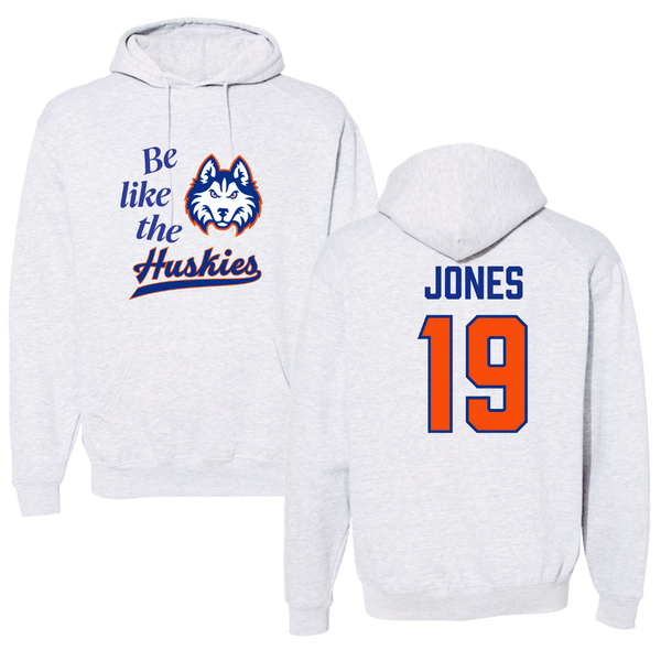 Houston Christian University Football Light Gray Be Like Us Hoodie - #19 Zion Jones