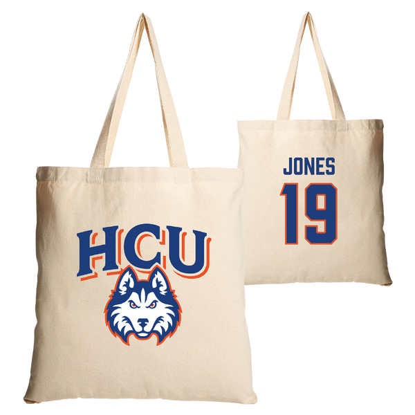 Houston Christian University Football Tan Canvas Tote Bag - #19 Zion Jones