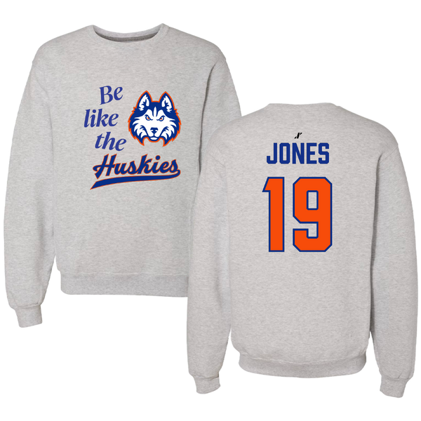 Houston Christian University Football Light Gray Be Like Us Crewneck - #19 Zion Jones