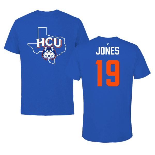 Houston Christian University Football Blue State Tee - #19 Zion Jones