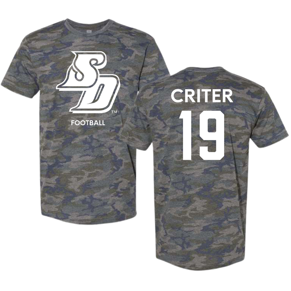 University of San Diego Football Vintage Camo Tee - #19 Adam Criter