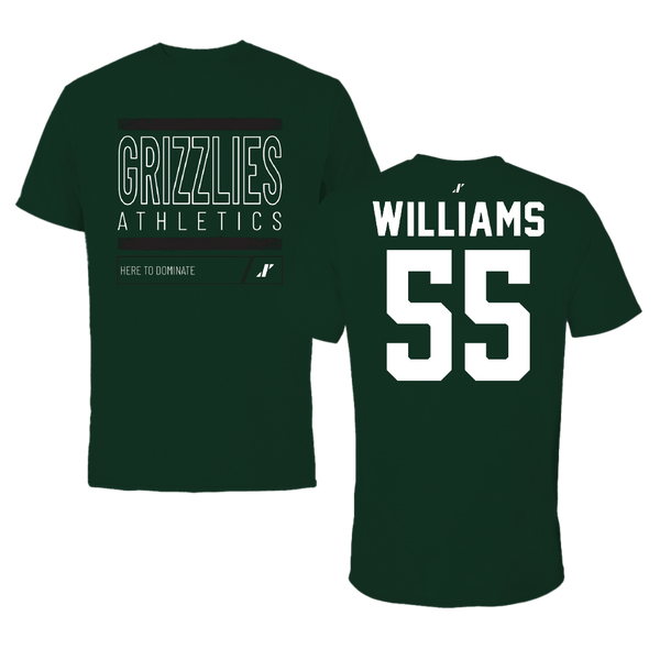 Adams State University Football Forest Green Dominate Tee - #55 Quincy Williams