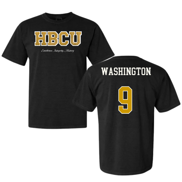 Alabama State University Soccer (W) Black HBCU Varsity Comfort Colors Tee - #9 Sydney Washington