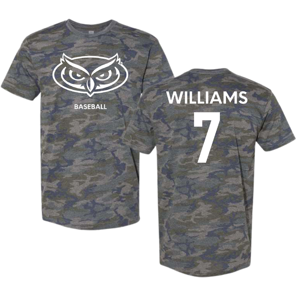 Florida Atlantic University Baseball Vintage Camo Tee - #7 CJ Williams