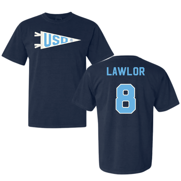 University of San Diego Football Navy Pennant Comfort Colors Tee - #8 Conor Lawlor