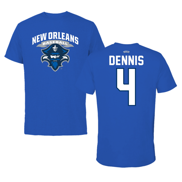 University of New Orleans Baseball Blue General Tee - #4 Cortez Dennis