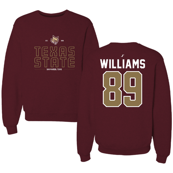 Texas State University Football Maroon General Crewneck - #89 Jordan Williams