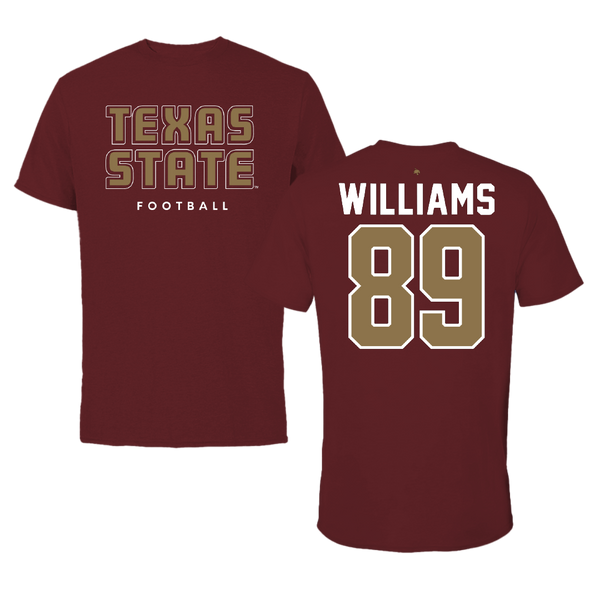 Texas State University Football Maroon Tee - #89 Jordan Williams