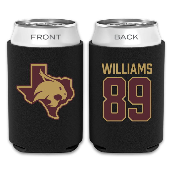 Texas State University Football Black Can Cooler - #89 Jordan Williams