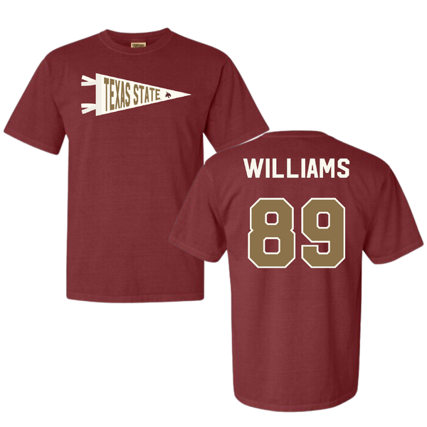Texas State University Football Maroon Pennant Comfort Colors Tee - #89 Jordan Williams