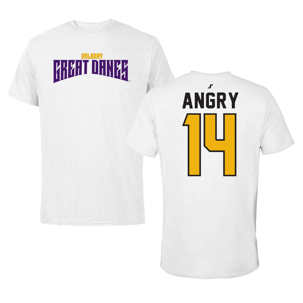 University at Albany Football White Mascot Tee - #14 Kevon Angry