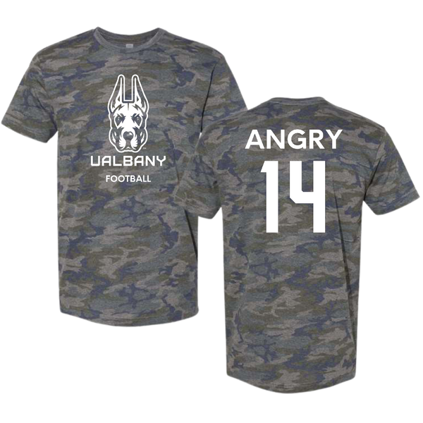 University at Albany Football Vintage Camo Tee - #14 Kevon Angry