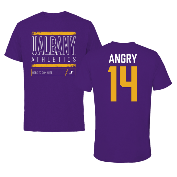 University at Albany Football Purple Dominate Tee - #14 Kevon Angry
