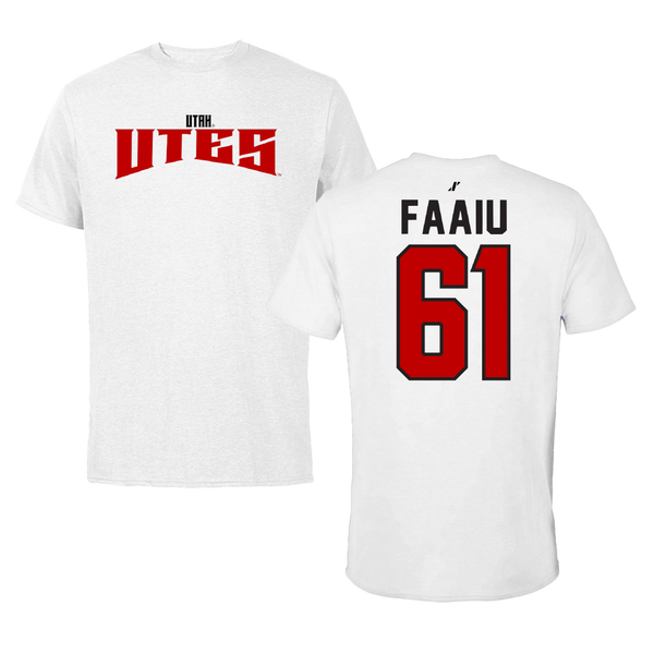 University of Utah Football White Tee - #61 Kolinu'u Faaiu