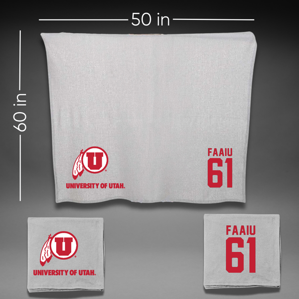 University of Utah Football Gray Blanket - #61 Kolinu'u Faaiu