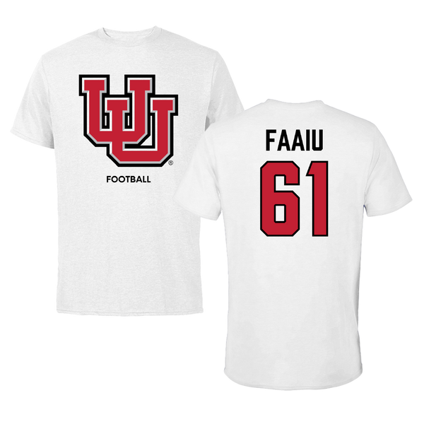 University of Utah Football White Classic Tee - #61 Kolinu'u Faaiu