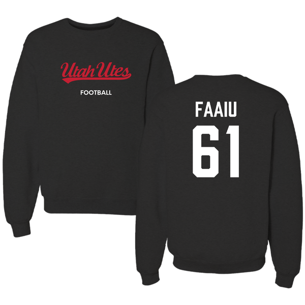 University of Utah Football Black Crewneck - #61 Kolinu'u Faaiu