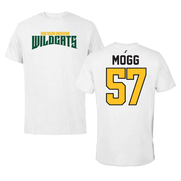Northern Michigan University Football White Tee - #57 Logan Mogg