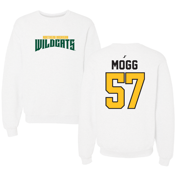 Northern Michigan University Football White Classic Crewneck - #57 Logan Mogg