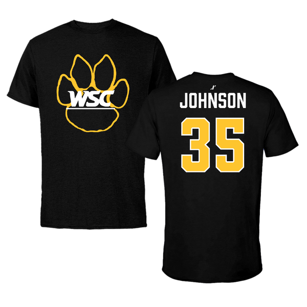 Wayne State College (Nebraska) Football Black Tee - #35 Luke Johnson
