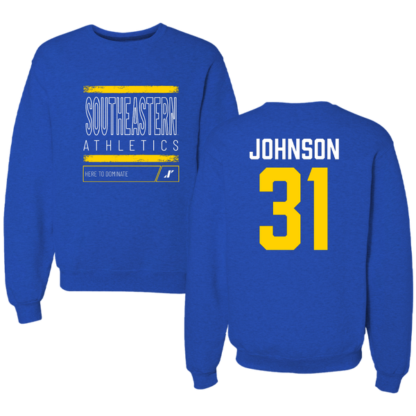 Southeastern Oklahoma State University Baseball Blue Dominate Crewneck - #31 Luke Johnson