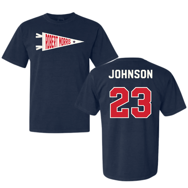 Robert Morris University Ice Hockey Navy Pennant Comfort Colors Tee - #23 Luke Johnson