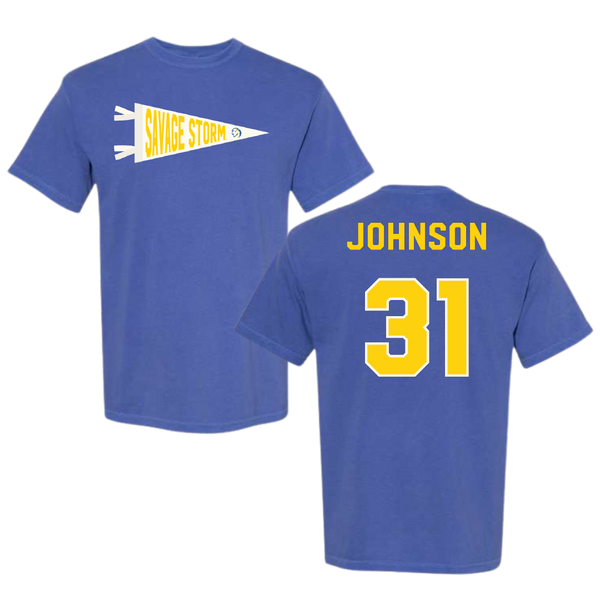 Southeastern Oklahoma State University Baseball Blue Pennant Comfort Colors Tee - #31 Luke Johnson