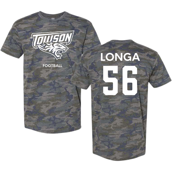 Towson University Football Vintage Camo Tee - #56 Matthieu Longa