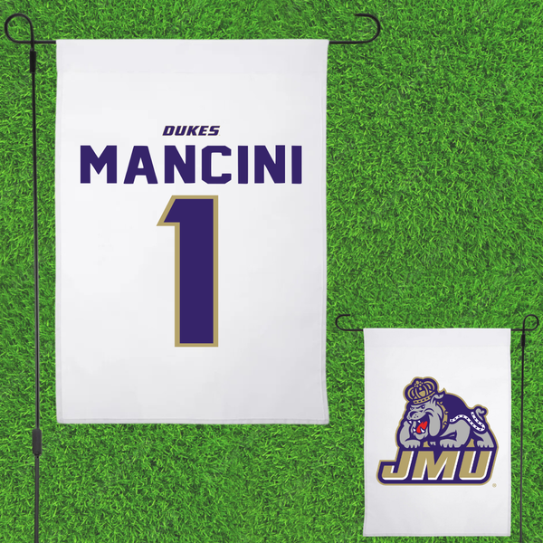 James Madison University Baseball White Garden Flag - #1 Mike Mancini