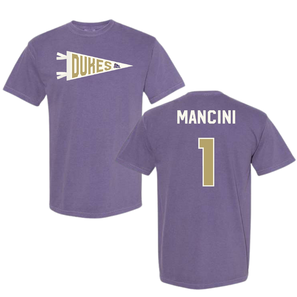 James Madison University Baseball Purple Pennant Comfort Colors Tee - #1 Mike Mancini