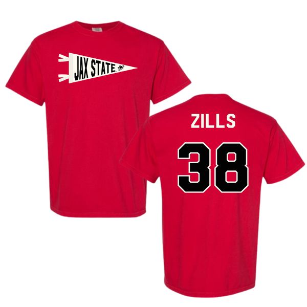 Jacksonville State University Football Red Pennant Comfort Colors Tee - #38 Nate Zills