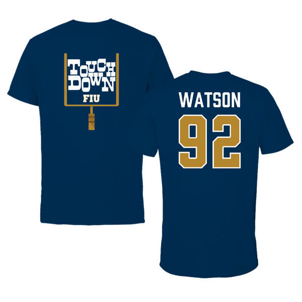 Florida International University Football Navy Touchdown Tee - #92 Nicholas Watson